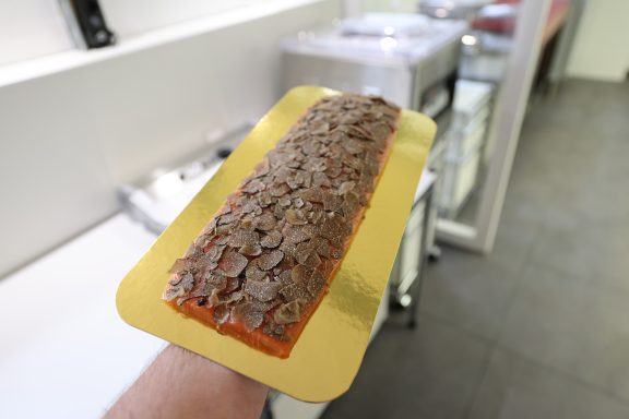 Lachshälfte mit Haut roh ca. 1kg  45.- €
