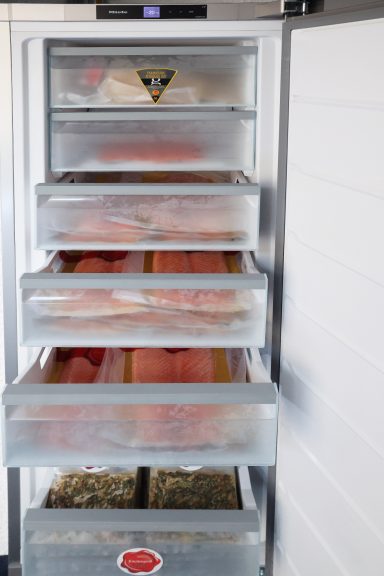 Beilagen rundum Ihren Fisch stehen im Regal.